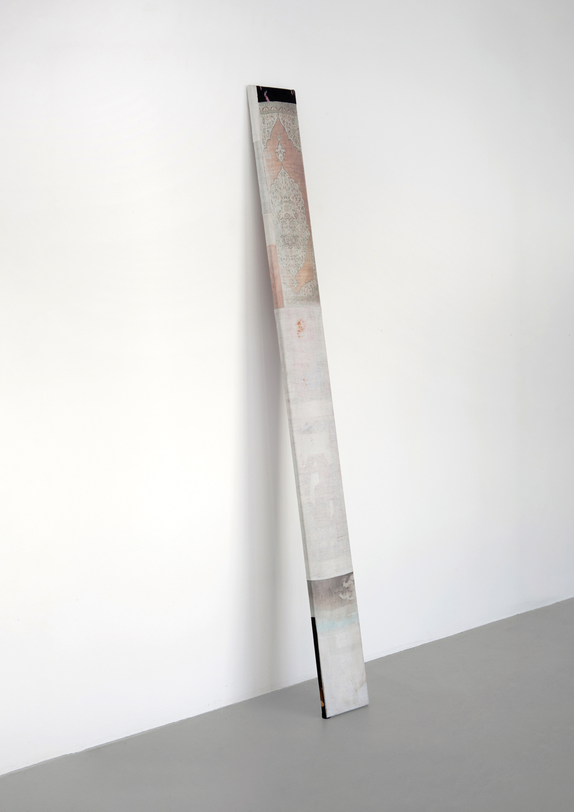 bleach, varnish, digital print on sewn handwoven linen 2019